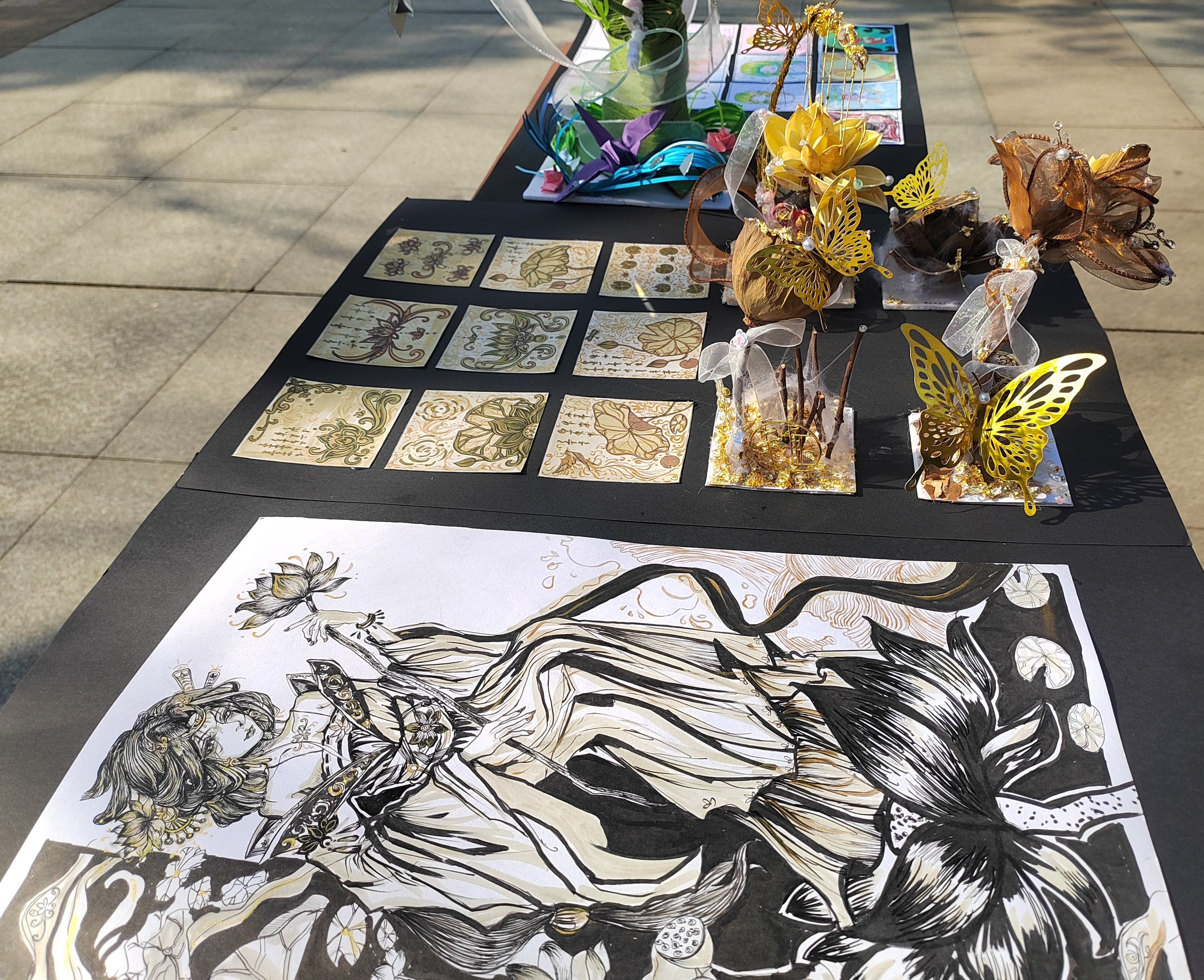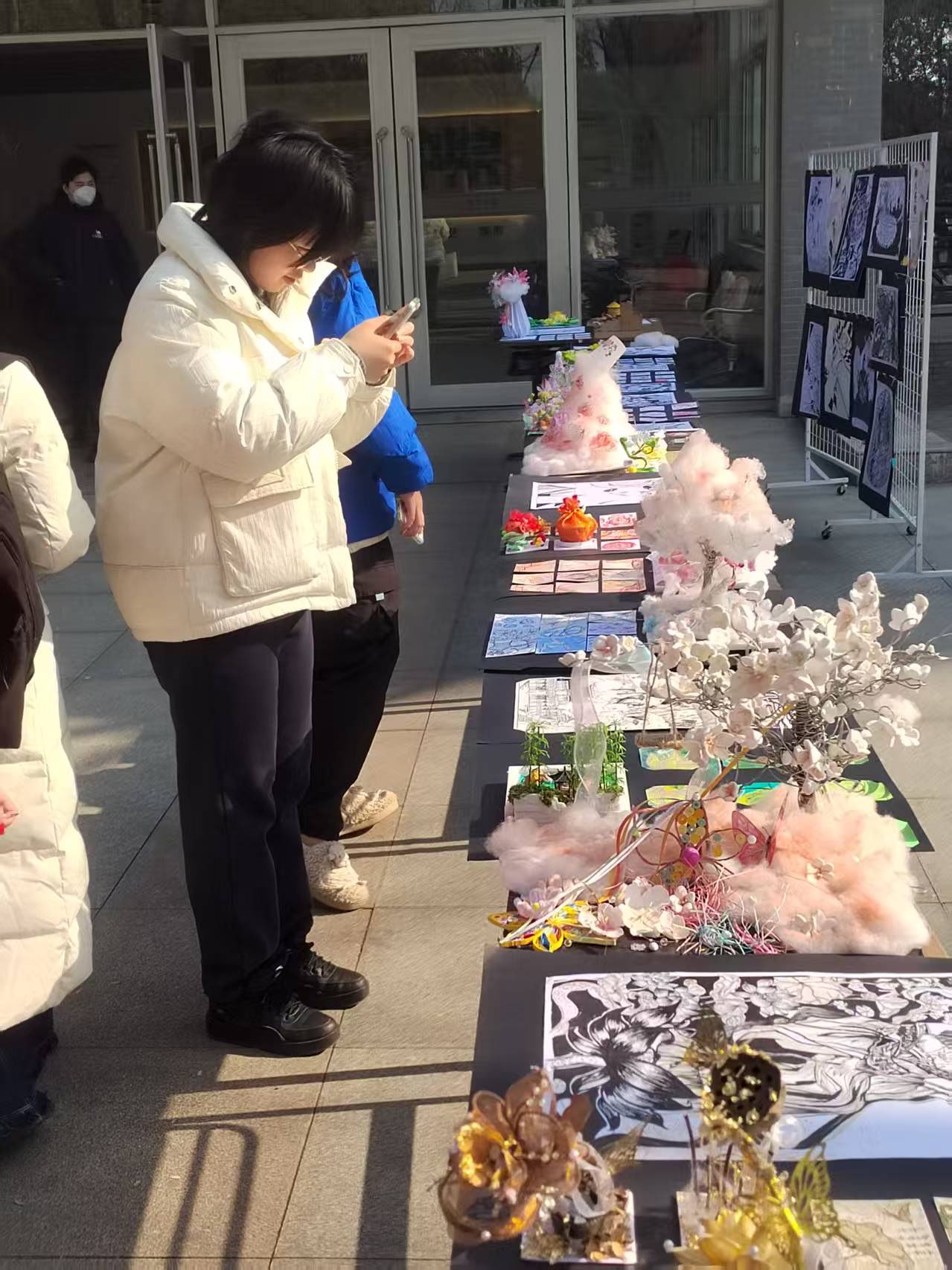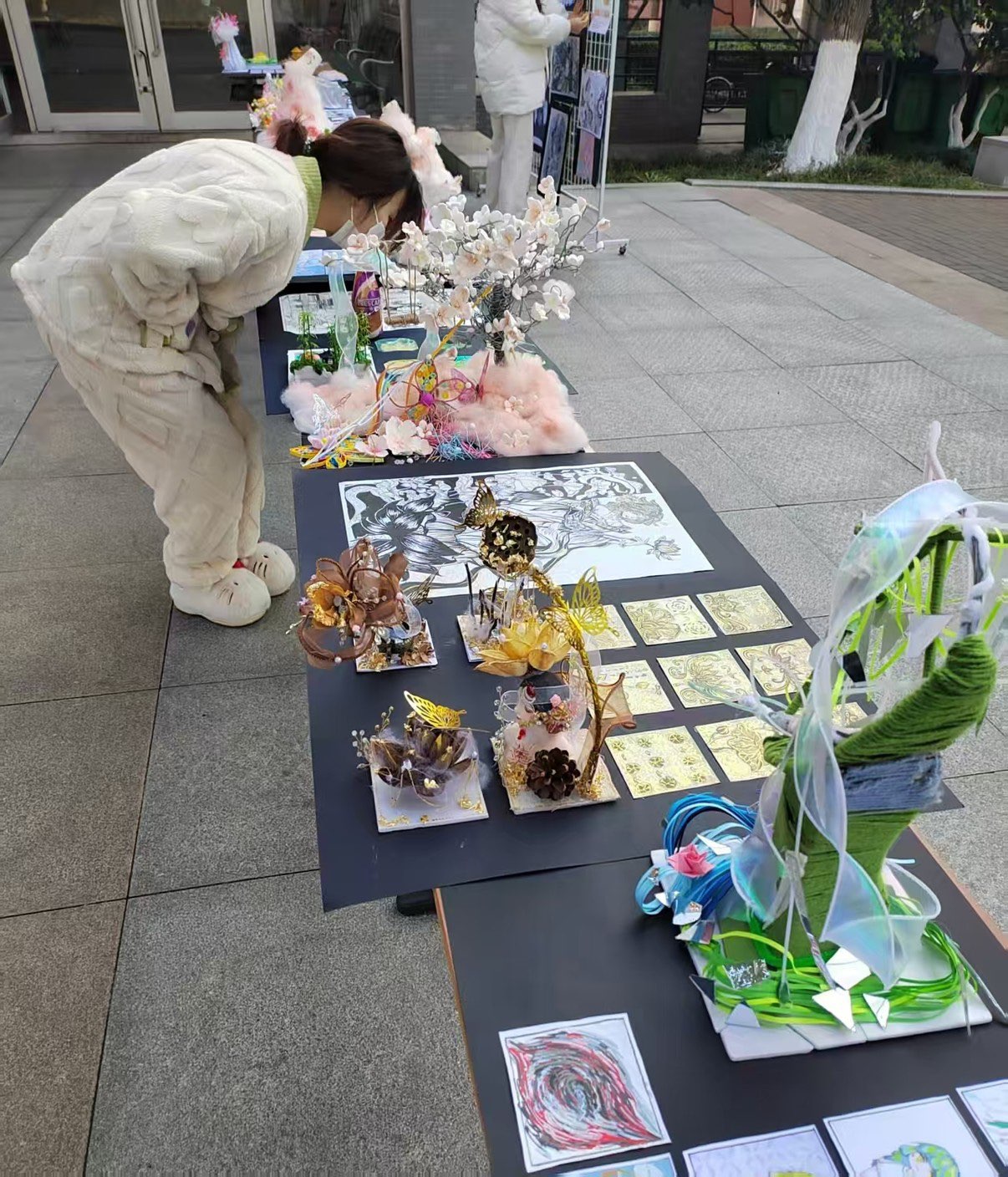 实践中,学生们以“12月花风”为题,自由选择花种与表现形式,有同学从中国古典纹样中汲取灵感,将缠枝莲纹、宝相花纹重构为花卉的生长肌理;有聚焦人物设计,以“赏花人”“花魂”等角色串联起花卉背后的历史故事;也有同学搭建微型场景,用一套作品还原“正月梅花傲雪”“五月榴花照眼”的诗意画面。每一件作品都跳动着鲜明的个人印记.这正是课程“鼓励开发学生专属艺术风格”理念的最佳注脚。
