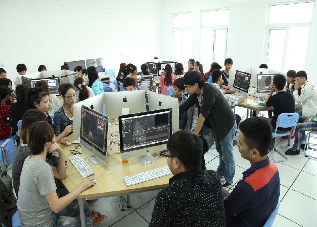 非编渲染实验实训室建于2016年,总建筑面积80平方米,拥有41套苹果一体机、7套专业非线性编辑软件和2套高配置苹果渲染工作站,搭配专业的监听及教学管理软硬件系统,能够满足对动画、视觉传达设计、舞蹈表演等专业非线性编辑、动画渲染、影视特效、音乐剪辑、音效合成等专业核心课程的教学,年均承担实验实训项目20余个。该实验实训平台对动画、影视广告、曲艺创作等项目中场景数据剪辑、编辑渲染与后期合成等环节形成有效支撑,在动画、表演等专业人才培养中具有不可替代性。
