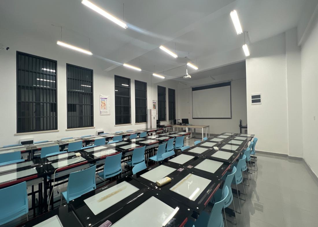 拷贝与动检实验室建于2015年,总建筑面积90平方米,配备40套迪生拷贝透写台、打孔机、迪生线拍系统及投影成套设备,主要承担我院动画专业原画设计、分镜设计、动画运动规律、二维动画后期制作和综合实训等多门课程的教学,年均承担实验实训项目20余个。该实验室结合专业透写台设备重点训练学生的手绘能力和表现技法,通过扫描与检测软硬件设备完成静态二维动画作品的全过程检测与无纸动画向电子图像的后期转换与处理,重点支撑学生逐帧动画作品的设计与制作能力训练。