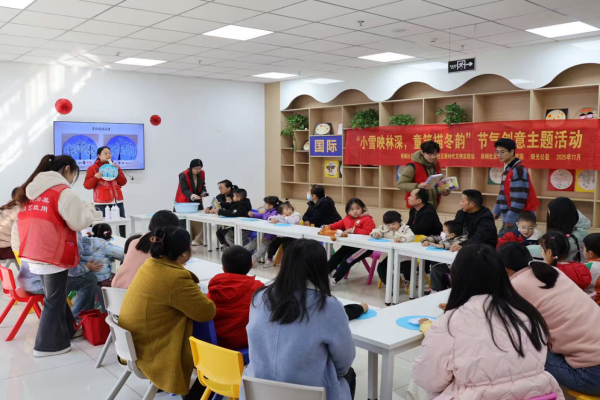 活动伊始,志愿者们以生动易懂的语言,向到场的小朋友及家长介绍小雪节气的文化内涵、民俗知识与自然物候特征,让孩子们对这一传统节气建立直观而清晰的认知。随后,志愿者展示优秀节气绘画作品,充分激发孩子们的创作灵感与参与热情。