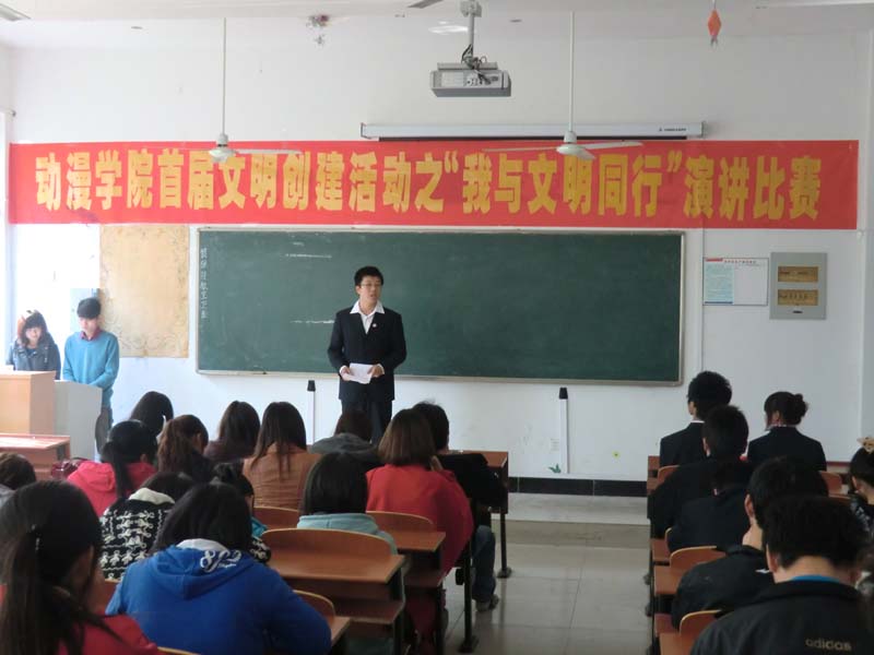 11月16日下午,动漫学院首届文明创建系列活动之“我与文明同行”演讲比赛决赛在信工3106多媒体举行,动漫学院学管秘书杨光,动漫学院行政秘书郑妮,以及各班级辅导员出席了此次会议并担任评委。