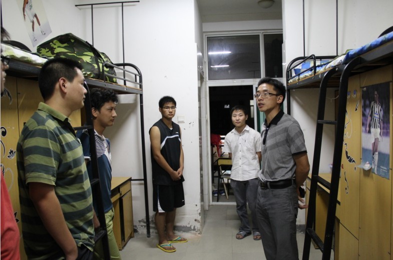 为了解新生在校住宿和生活情况,8月31日晚,动漫学院行政副院长朱诵贵带领学院行政秘书、学管秘书及学生会、助理团等学生干部深入宿舍慰问2013级新生。