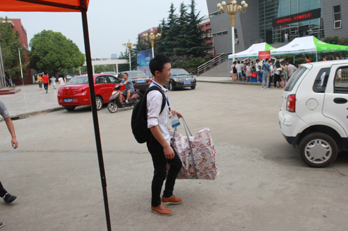 午饭过后,我院的学生也陆续开始抵达学校。面对新生报到,学生会的学长学姐们也是十分热情,给予新同学全面的帮助。瞧,那位学长,看到小学弟来报到,手中提了很多的东西,看起来很吃力的样子。他便主动地帮他拿起了最重的那包行李。学长很瘦弱,没有很大的力气,他拿起来那包行李,很吃力,一会儿换一只手,但是,他没有说过一个累字。在这里,我想对学长说,学长棒棒哒!