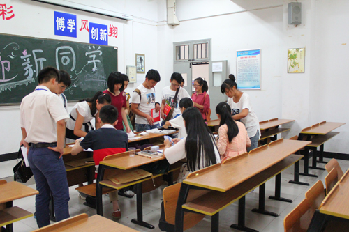 省内各地新生汇聚我院,孩子学习总不乏有家长的身影,在注册场内可以看到不少全家出动,一起送学的情景、亦有自强不息,充分展现新时代大学生精神的独立学子,有的家长不远千里送儿上学,还全程拍摄,为的是留下孩子进入大学殿堂的每一瞬间,有的家长白发苍苍踏着老迈的步伐见证儿孙就读南华学院这书香学府,慰藉年轻时难以学习的人身遗憾。尽管烈日当空,我们学生志愿者做足100%最窝心最体贴的服务,为有需要的学子提供服务。会场不乏动人画面,例如一位新生因腿部有伤,需拄拐杖而行,我院接待成员为其安排一边就坐,注册过程由我院成员代为完成并安全将其送达学生宿舍,此类温馨动人镜头随处可见。