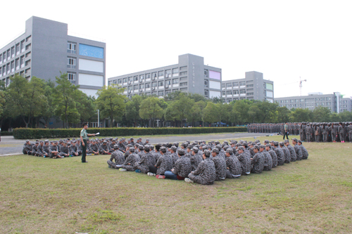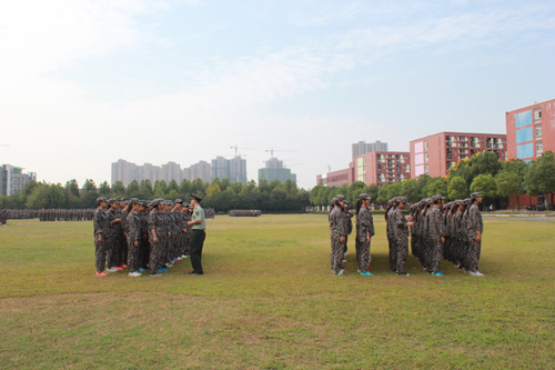 早7点,创新大道的操场上,开始填满一块块迷彩方阵。虽然教官还没有到来,但是我院的各新生班辅导员已经按照既定的分组方案,对新生们以专业、性别进行分连。在老师的指挥下,新生们很快地站好了队伍。他们身姿挺拔,统一的着装,带着必胜的信念,接受青春的挑战。对他们来说军训是学习,军训是磨练,军训更将是收获。