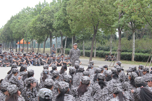 军训是新生们大学生活的第一课,也是他们成长中的又一次蜕变。军训时,教官们严格要求,新生们努力训练,但是在休息之余,辅导员老师、教官、新生三者互动游戏,不仅使大家忘记军训之时的劳累,也增进了相互的感情。