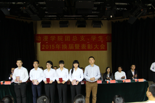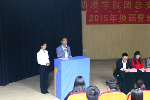 (通讯员:王立平)10月10日,我院团总支、学生会2015年换届暨表彰大会在文传演播厅隆重举行。出席本次会议的有,我院党总支书记、执行院长计勇、校团委书记吕翔、我院教学副院长许存福,副院长朱诵贵、行政秘书郑妮、团学组织指导老师王力平和辅导员出席了会议。我院团总支学生会全体成员和兄弟院系团学组织代表参加了了本次换届典礼。