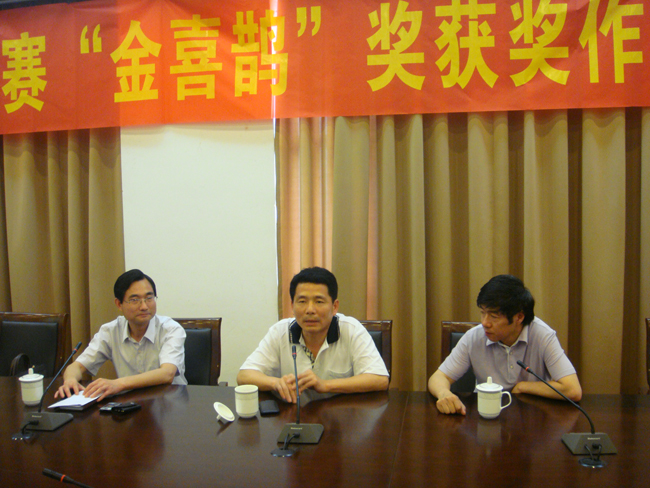获奖选手代表于波(安徽同仁文化传播有限公司)、谢媛(明星学院)与与会代表分享了创作心得,并进行了座谈交流。