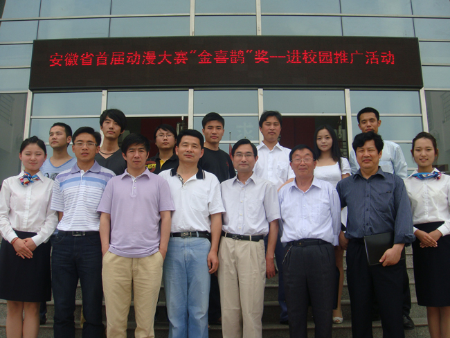 安徽省动漫协会秘书长、安徽同仁文化传播有限公司总经理吴铭东代表组织方发言,他首先感谢了安徽新华学院对推广活动的支持与配合,介绍了本次推广活动的目的和意义,旨在宣传“金喜鹊”奖动漫大赛的过程,推广动漫大赛的影响力,深化的大赛的内涵;同时指出,安徽新华学院动漫学院在成立一年的时间里取得了诸多成就,并祝愿学院在今后的发展中再接再厉,再创辉煌!