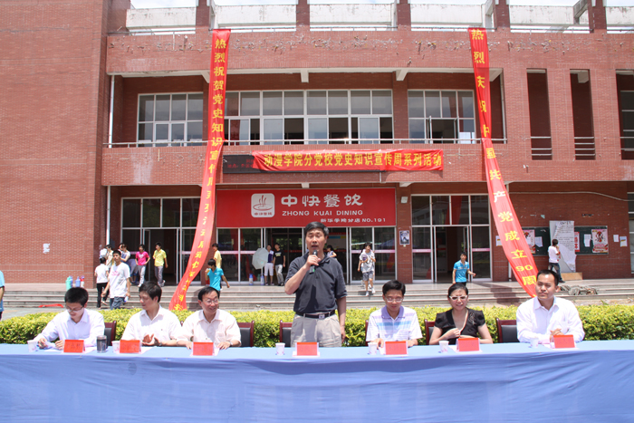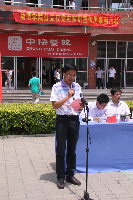 为庆祝中国共产党成立90周年,引导和帮助广大党员重温中国共产党光辉历程,了解党领导人民建立新中国和进行社会主义现代化建设的伟大成就,激发爱党、爱国、爱社会主义的热情,坚定共产主义理想信念,由动漫学院党总支主办、动漫学院分党校第二期入党积极分子培训班承办的 “党史知识宣传周系列活动”于5月9日中午正式启动。督导专员、安徽新华学院党委书记方向明,安徽新华学院党委委员、动漫学院党总支书记、院长孙家启,动漫学院党总支副书记、行政副院长朱诵贵出席了启动仪式,动漫学院全体党员和动漫学院分党校第二期入党积极分子培训班的全体学员参加了仪式。