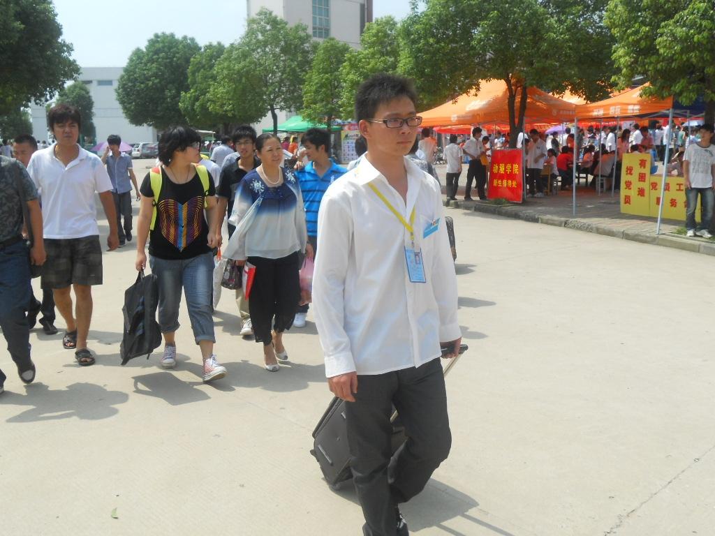 7时50分左右,第一批新生映入我们眼帘。同学们各个心情激动,主动的为新生服务询问,满腔洋溢的热情感动了新生和家长。随着大批新生的来到,整个校园更加热闹了起来。在北大门的助理团工作者把新生引到了报名点,询问清楚情况后又由报名点的工作者带领新生报到、缴费、领物资并送往各个寝室。一路上,工作者们以饱满的热情给新生们介绍华院的风土人情以及一些防骗知识。一次又一次,在骄阳的暴晒下,他们乐此不彼的奉献着……