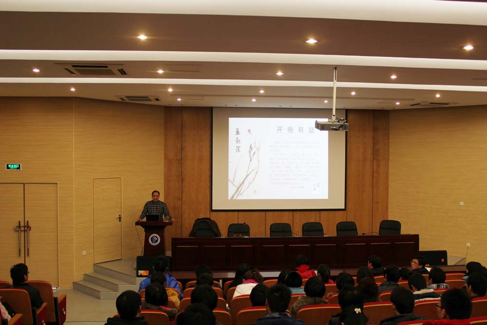 姚院长用精简而又幽默的语言为同学们解读了《易经》。并提出“为何读书,读书利益”等问题。他说:“开卷有益,读书有方,有三:学以致用、学以致学、学以致道”。并用‘为人师表的仪态及表达能力’‘朱熹《观书有感》’‘《庄子•应帝王篇》’等生动而又精髓的例子为同学们解说开卷的益处,学习的好处。