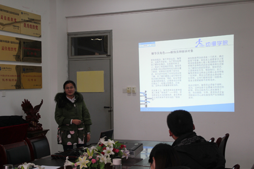在特色展示环节,辅导员们精心策划、精彩展示,表现出了过硬的基本功和较高的职业素养。在主题班会环节,辅导员们不仅能熟练运用多媒体手段,而且主题明确、思路清晰、剖析深入、引导全面,体现了严谨的工作态度和扎实的业务能力,赢得了阵阵掌声。在情景谈话环节,有的老师循循善诱,谈人生,谈理想;有的老师方法得当,摆事实、讲道理;有的老师条理清晰,分析利弊,评判优劣。最后,现场还进行了闭卷的辅导员基础知识测试。