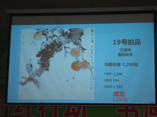 经过近一个月的精心准备,初选出40余幅作品;经过专家评审,最终挑选出26幅作品。王维华老师也捐出自己的《春花秋实》和《牵牛花》两幅作品,于5月初将这28幅作品交映山红行动节目组。在5月下旬举行的义卖活动中,以上28幅作品累计拍得近万元善款,所得全部用于“映山红行动”,为我省十所农村学校开展为期一年的专业美术教育。此外,在拍卖现场,王维华作为此次活动的指导老师接受了安徽电视台的采访。