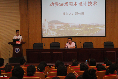 6月10日下午,北京搜狐畅游公司人物角色原画设计师、腾讯合肥分公司游戏事业部原画组组长、北京汇众益智科技公司合肥分公司原画高级讲师汪传魁在学术报告厅做了“动漫游戏美术设计技术”的专题报告。我院执行院长计勇主持报告会,动漫设计与制作、动画、数字媒体等专业师生聆听了本次报告。