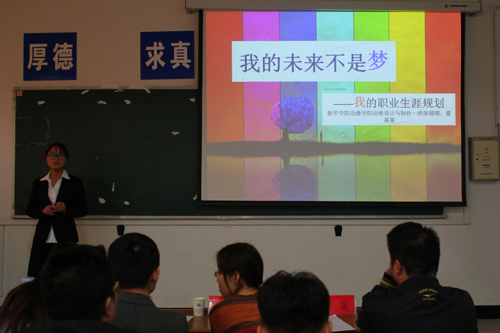 本次大赛的参赛作品分为就业组和创业组,各位参赛选手要通过作品展示、评委提问两个环节的考验。在个人作品展示部分,就业组的每位选手都结合自身实际情况与社会需求,以PPT讲解的方式从专业、职业等方面,按照“自我认知、职业认知、职业规划设计”等几个步骤进行了个人职业生涯规划作品的展示;创业组的同学也认真的分析了自己的现状,对创业项目的可行性做了细致的分析,并制定出切实可行的计划。在评委提问环节,选手们巧妙地回答了评委们提出的各种问题,精彩的表现赢得台下观众的阵阵掌声。