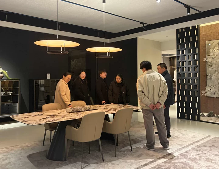 志邦家居股份有限公司是本地百强企业,是吸纳艺术学院毕业生实习就业的重点单位之一。我校在职志邦的校友代表穆一、马森、伍宏建、邹祥龙带队,陪同到访人员参观企业产品展厅:从定制家居的空间功能优化方案,到环保材质与艺术美学的融合设计,前沿产品让在场师生直观触摸到行业对环境设计专业的实操需求。