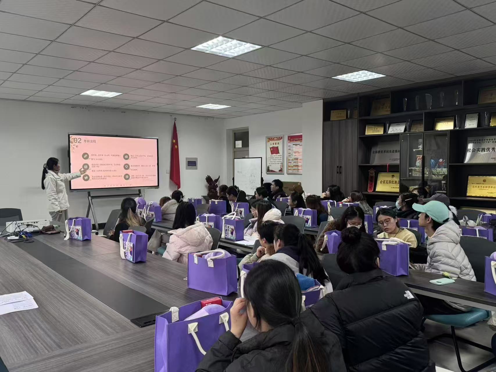 本网讯(通讯员:杨凯)2025年硕士研究生升学考试临近,为帮助我院备考学子卸下心理包袱、凝聚冲刺力量,以最佳状态迎战考试,近日,艺术学院精准聚焦考前需求,成功举办“艺研为定”考研经验分享暨考前动员与心理辅导座谈会。活动特别邀请学院心理联络员姜宜婷老师,以及2025届考研上岸的陶倩倩、刘悦两位优秀学子,为全院66名备考学子送上“考前暖心指南”与冲刺鼓劲,助力大家从容应考。