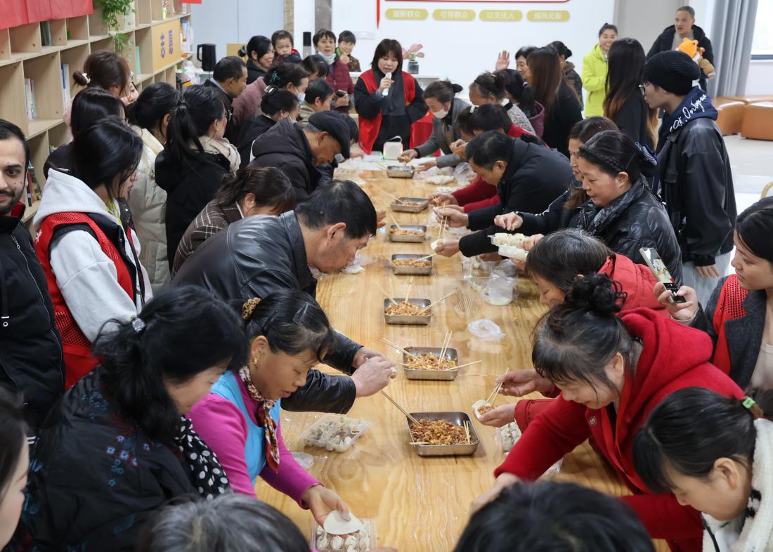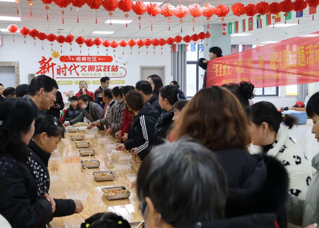 活动过程中,社区居民围坐在一起,巧手翻飞包饺子,老手动作娴熟、技艺精湛,新手虚心请教、认真学习,大家边操作边交流冬至传统习俗、生活趣事,氛围十分融洽。短短时间内,一个个形态各异、饱满圆润的饺子便摆满托盘,承载着团圆与温暖。现场还有外国友人参与其中,沉浸式体验中国传统节气习俗,感受中华传统文化的独特魅力,进一步推动了传统文化的传播与弘扬。
