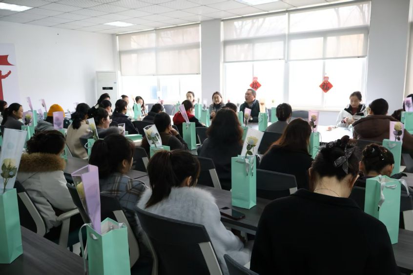 活动现场温馨雅致,学院为每一位女教师准备了芬芳馥郁的玫瑰花、舒缓身心的香薰以及精美礼品,一份份贴心礼物承载着学院与学校的浓浓心意,让在场的每一位女教师倍感温暖与惊喜。