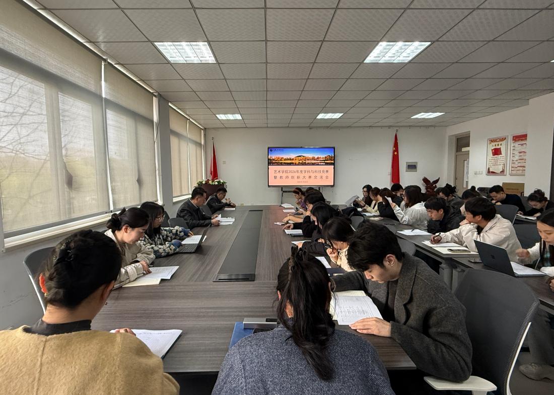 本网讯(通讯员:朱书悦)近日,在学院会议室召开2026年度学科与科技竞赛暨教师创新大赛交流会。会议由教学副院长刘刚主持,美术系主任王晓俊、设计系副主任郝静雅、动画系副主任江静、表演系副主任闫井明及各竞赛项目负责人参加会议。本次会议旨在统筹规划2026年学科竞赛与教师教学创新工作,明确目标、细化任务,推动学院教学与竞赛工作再上新台阶。