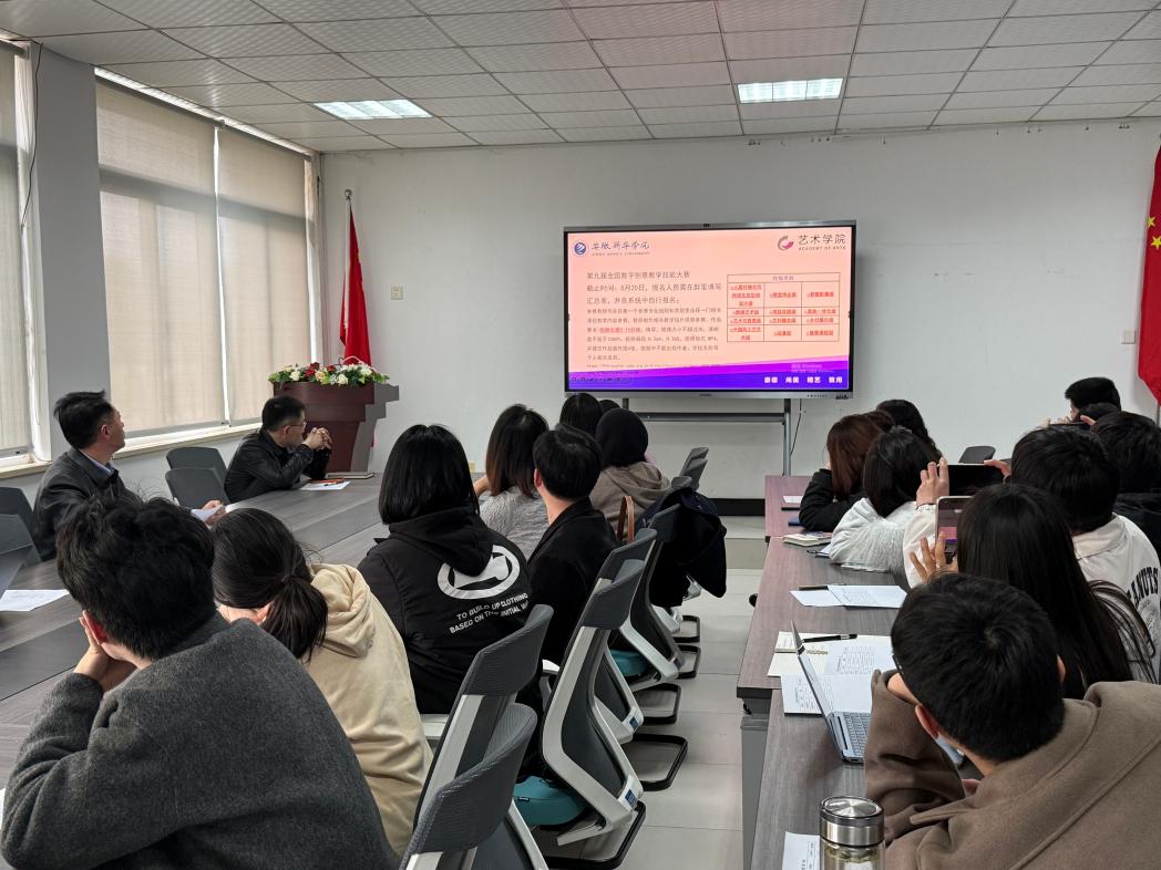 接着,教学竞赛对接人杨蕊就教师教学竞赛的注意事项进行讲解。她结合往届参赛经验,强调参赛教师需注重教学设计的创新性、教学方法的实用性以及教学成果的展示效果。杨蕊指出,教师教学竞赛不仅考察教学能力,更注重教学理念的更新,建议参赛教师结合艺术学科特色,融入项目式教学、翻转课堂等新型模式,突出“以学生为中心”的教学理念。她还提醒,材料准备需详实具体,包括教学设计、创新点说明、学生反馈等,避免空泛表述,同时注意时间节点,确保按时提交。会议最后,刘刚副院长总结指出,2026年是学院学科建设与教学改革的关键一年,学科竞赛与教师创新大赛是学院发展的“双引擎”。他要求各负责人加强协同配合,细化任务分工,确保竞赛计划与教学创新工作落地见效。同时,学院将加大支持力度,为竞赛项目提供资源保障,鼓励师生积极参与,力争在竞赛中展现艺术学院的风采。