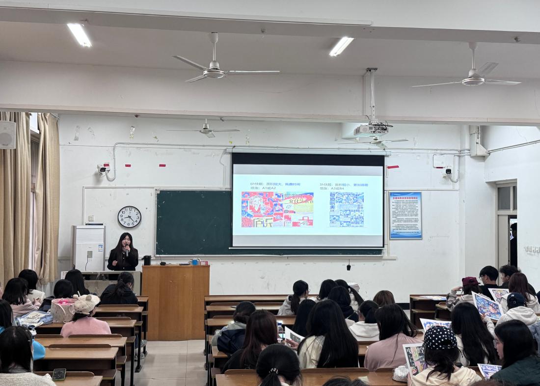 讲座过程中,老师围绕手绘插画的基础技巧、风格塑造、与视传设计的融合应用三大模块展开详细讲解。老师通过现场展示优秀作品,从线条勾勒、色彩搭配、光影处理等细节入手,拆解了手绘插画的创作要点,引导学生学会捕捉生活中的灵感,将日常观察转化为设计素材。针对视传专业的特点,展示了如何通过手绘插画为设计作品增添创意亮点。